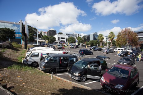We were quiet dissapointed by the Auckland Backpackers Carmarket. We expected a place, just like the Backpackers Car Market in Christchurch: A place were you can park for a couple of days and try to sell your vehicel to interested customers, a place were you are allowed to sleep inside your van within the city, a place were you can do laundry, take a shower and use the internet for maintaining your gumtree add.
