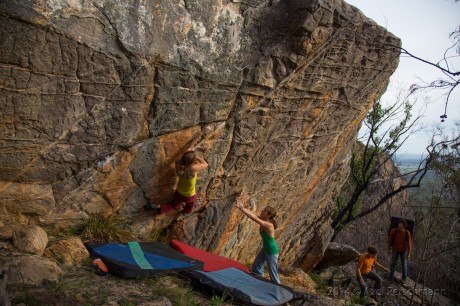 On the campground we met other climbers (partly friends known from previous trips, partly new made friends) and since there is not really a guidebook pubished yet, it was a good chance to get a tour through the areas. The bouldering in the southern Grampians Nationalpark is still in development. While some good looking lines have been cleaned and climbed there’s plenty a chance to find a new line noone has ever looked at, or even tried to climb yet.