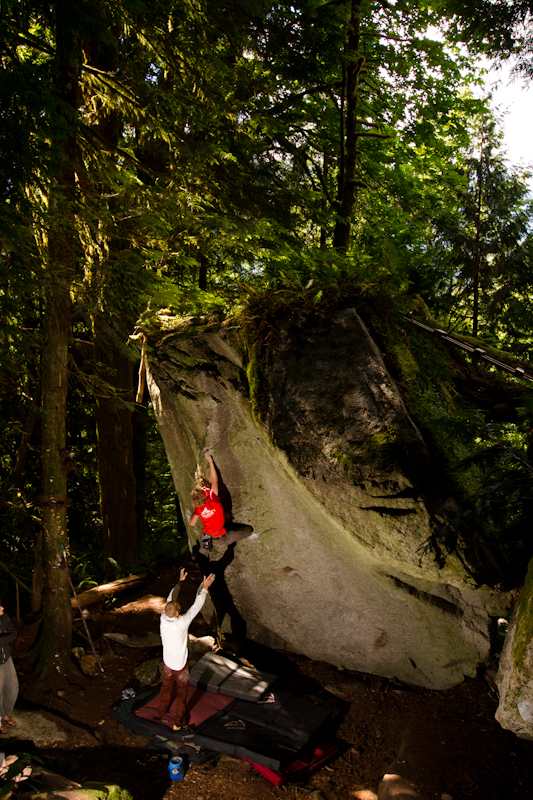 Hitze, Regen, bissle doof manchmal hier, aber die kletterrei ist echt supergut! Nach dem letzten Bericht hatten wir erstmal nochmal nen Regenmorgen, so dass wir gezwungen waren den Canadaday (1. Juli) mit nem leckeren, kleinen Kuchenstück in der Stadt zu feiern. Abends konnte ich dann zumindest noch Arthur motivieren mit den noch leicht feuchten Wald zu ziehen.