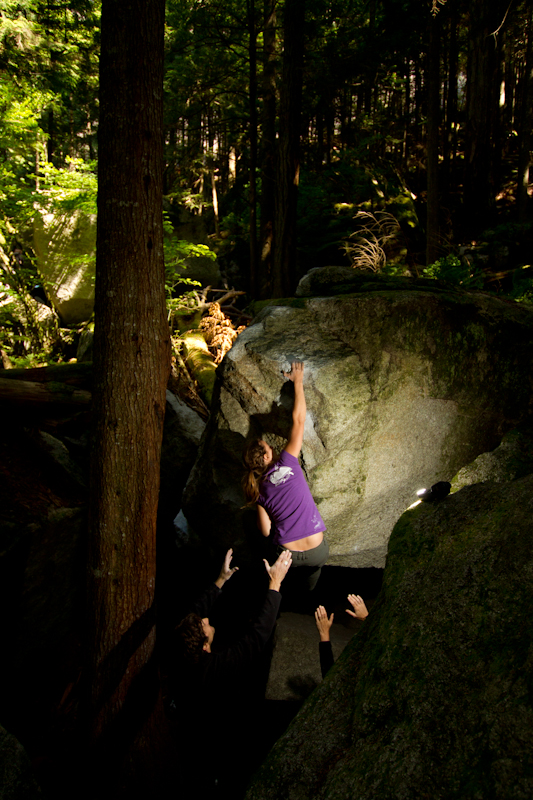 Der nächste Tag bot schon deutlich trockenere Bedingungen, wir nutzen die Gelegenheit, ein neues Gebiet hier auszukundschaften: Die North Wall Boulders. In einer kurzen morgensession gelang mir recht schnell „Immunized“, V9 (~fb 7c) und am Nachmittag konnte ich mit „Ressurection“ meine erste V9 flashen! Katinka begeisterte sich währenddessen für Space Monkey, V5 (~fb 7a) und versuchte sich an allerlei anderen Bouldern.