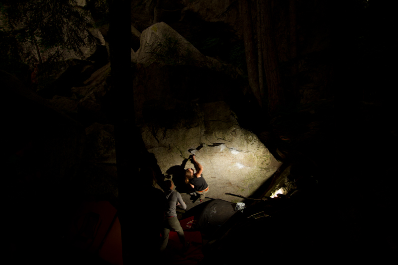 Nun können wir also endlich Bouldern gehen: Squamish ist ziemlich ähnlich wie das Averstal, nur die Blöcke sind hier deutlich größer und die Kulisse außenrum ist beeindruckender mit dem vielen Wasser und den verschneiten Bergen und den gigantischen BigWalls. Man kann sich garnicht entscheiden, wo man anfangen soll, ein Boulder ist besser als der andere.