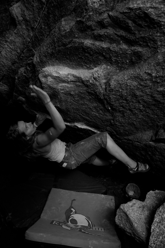 Dave Pearson, mit dem ich auf meiner letzten großen Reise lange in den Grampians (Australien) unterwegs war begrüßt uns. Die nächsten Tage gehen wir öfters mit ihm Bouldern und mir fallen „The Seam“, V10 (~ fb 7c+) sowie einige V8 (~ fb 7b+) Boulder zum Opfer, darunter die Classics „The Buld“, „Gibb’s Cave“, „Tatonka“, „Phantom Power“ und „Loose Change“. Katinka hakt währenddessen fleissig V4’s (~ fb 6c) ab, klettert „Dephts Direct“, V5 (~ fb 7a) und fliegt am letzten Zug von „Minor Thread“, V6 (~ fb 7a+) ab.