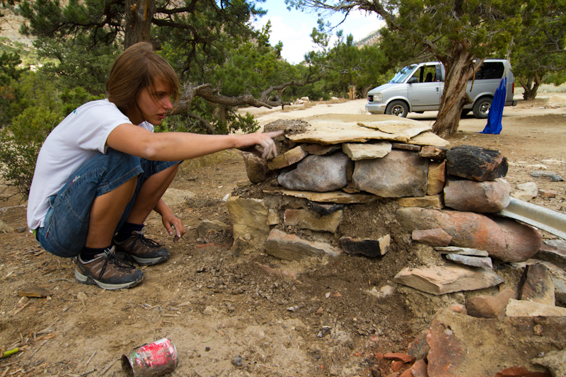 An unserem ersten, dringend benötigten Ruhetag reparieren wir schließlich den alten Steinofen, den wir vor knapp zwei Jahren hier gebaut hatten. Zwei neue, sauschwere Steinplatten müssen gefunden und zu unserem Camp transportiert werden und dann wird wieder mit Erde und Matsch gespielt, bis alle Löcher gestopft sind und der Ofen schließlich eingeweiht werden kann.
