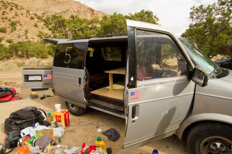 Das Auto wird umgebaut, absofort können wir gemütlich am Tisch sitzen.