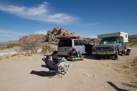 Wie auch immer. Außerhalb der Parköffnungszeiten (8 Uhr Morgens bis 18 Uhr Abends) wohnen wir direkt vor dem Parkeingang auf einem kleinen Stück Wüste, das einem Freund gehört in unserem Auto. Wir hängen die meiste Zeit zusammen mit Enzo Nahumury und Rick Oliver rum, letzterer kennt den Park und seine blöden Regeln in und auswendig und kennt alle Möglichen Tricks um einige davon zu umgehen bzw. angenehmer zu interpretieren.