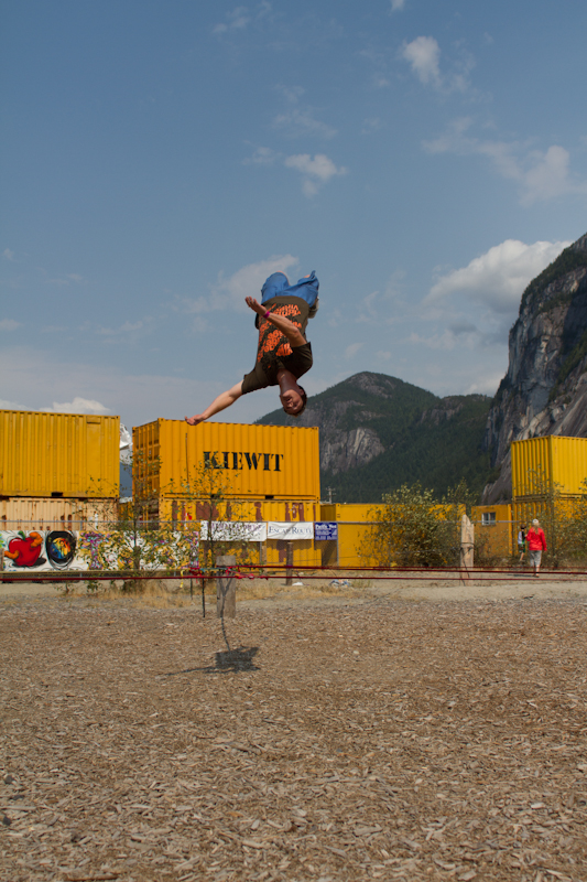 Salto beim Slacklinefestival in Squamish letztes Wochenende.