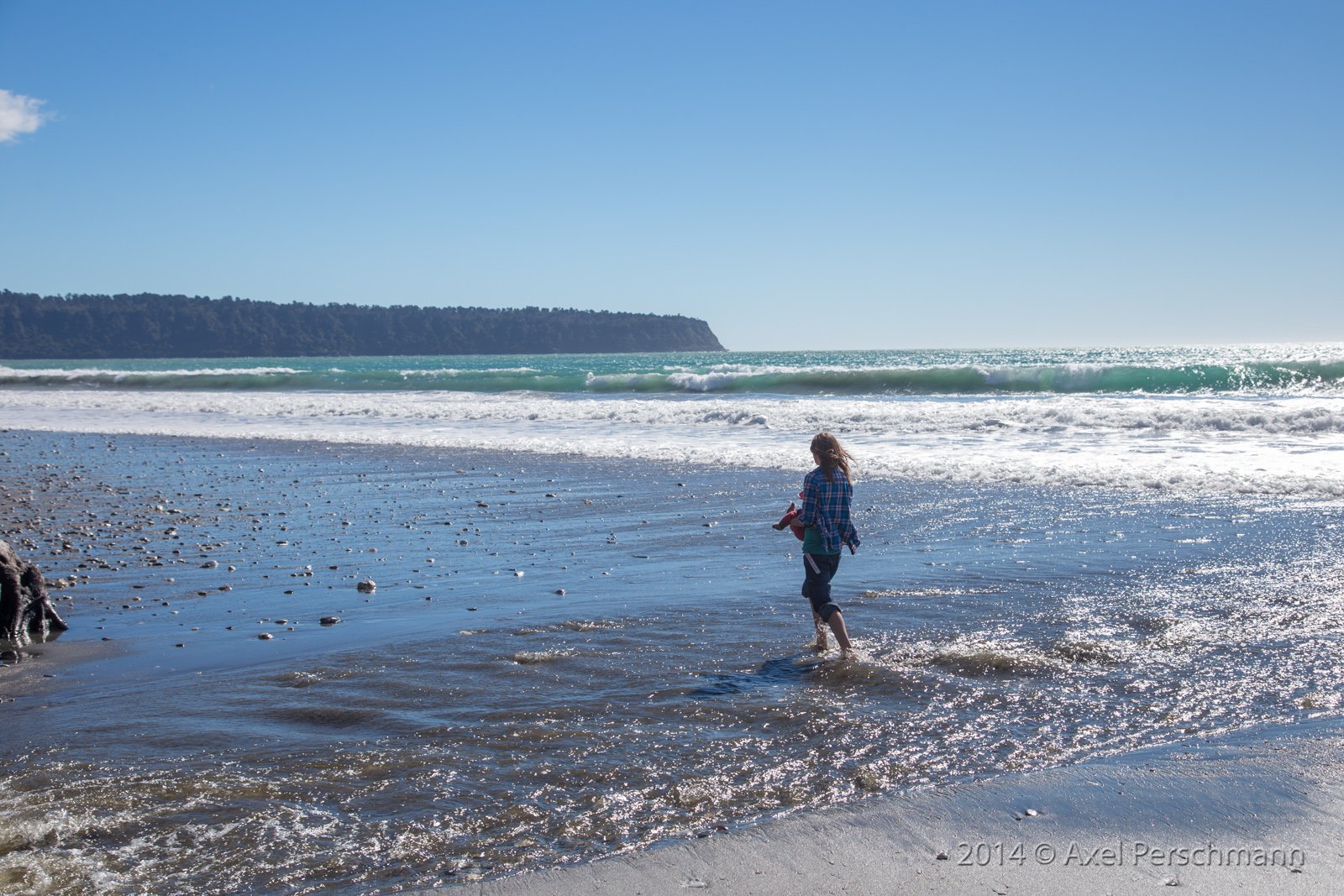 Luckily we catched a ride with a local we towed us the last 15km until we reached a small garage in Harihari. There were already other travelers having a overheating problem with their van and they had been waiting in front of the garage for the hole day, since the repair man had a lot of cars to fix. Since we have a little Baby with us, he was really friendly to us and even postponed his lunch break to fix our car. It was not a big deal, only the sparkling plugs were worn out and a few parts needed a replacement. 75$ later the car was back on the road and we could end second day driving in Hokitika, sitting at the beach and cooking some delicious pasta dinner.