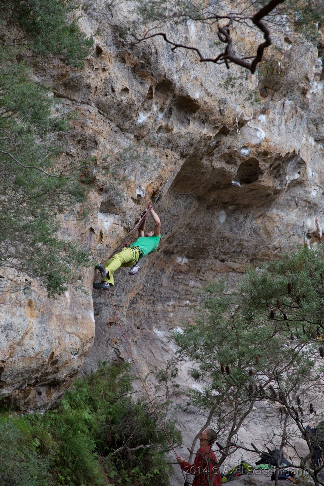 Katinka managed to tick one of her projects as she sent „Tricks Roughly“, 26 a few days ago. I myselfe climbed up all the way to the last move of „August 1914“, 29 three times now, but couldn’t finish it. I always get pulled down by gravity and my cold and numb fingertips, so i stopped trying it now. Better climb more and easier things at first and then return in better shape and send the project with a free mind but later.